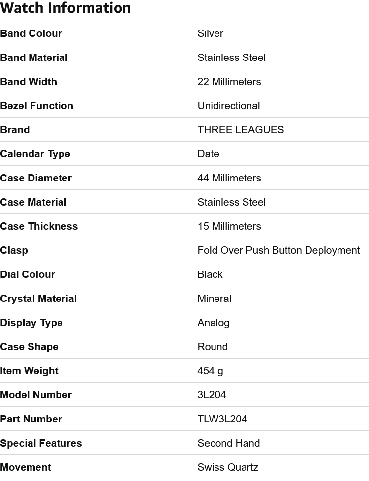 Three Leagues Grey Quartz Silver Stainless Steel Bracelet Men's Watch w/Date